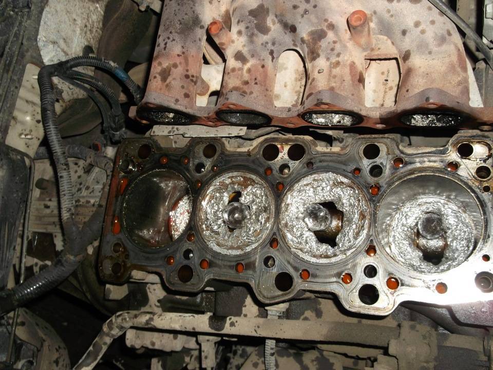 Клапаны будут врезаться в поршни, которые будут двигаться, поэтому они раздавят и погнут клапаны, если клапаны не пробьют крышку поршня.