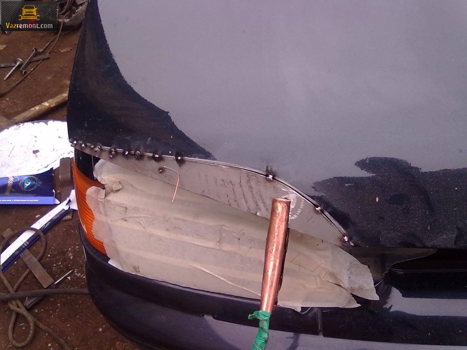 закрываем капот на крючек (не на замок) и поднимаем кромку возле лобового стекла на сколько надо (у меня ход кромки был больше сантиметра ввер-вниз). Аккуратно открываем капот и ставим на подпорку, зажимаем болты, проверяем.