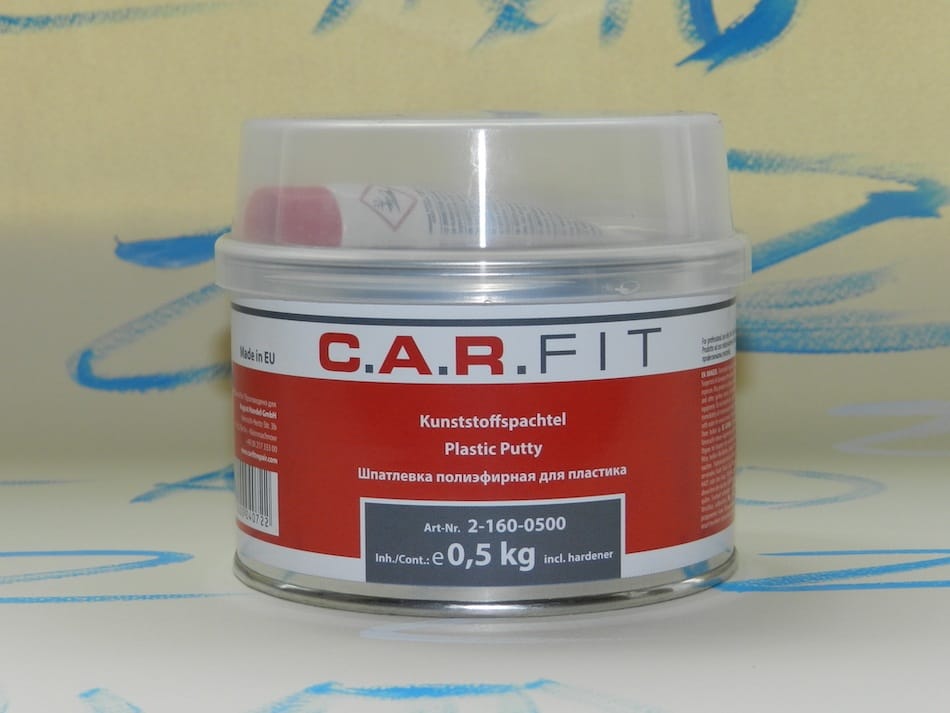 Шпатлевка для работ по пластику на элементах из ламинатов, твердого PCV и ABS. Очень эластична, хорошая тикстропия позволяет шпатлевать мелкие неровности и риски на поверхности пластиковых деталей. Специльно подобранные компоненты придают шпатлевке высокое тепловое расширение приближенное к пластику, что приводит к хорошей адгезии и защите от перепадов температуры окружающей среды.. Наносится тонкими слоями по 0,5-1мм. Время жизни на шпателе не более 5 мин при температуре 20С.. Обрабатывается абразивами Р120-Р320.