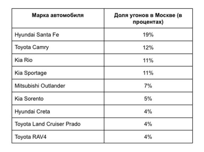 Так, в прошлом году было украдено более 17 тысяч таких автомобилей, что составляет 33 процента.