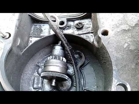 Напоминает симптомы износа коленвала. Почти всегда сопровождается течью масла. Самая распространённая причина — недостаточно затянутая или изношенная крепёжная гайка. На некоторых моторах она может откручиваться самопроизвольно — нужно периодически проверять плотность её посадки.
