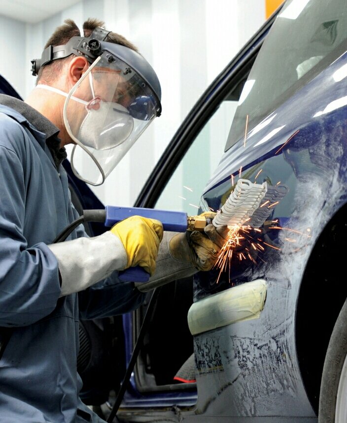 Проводится зачистка кузова от сколов ЛКП, ржавчины и прочих дефектов. Делают это обычно механическим путем с применением шлифовальной машинки и различного размера абразивов. Если на поверхности есть места с чистым металлом, то желательно дополнительно их обработать грунтом ACID #8. Вмятины и повреждения рихтуют и шпаклюют выравнивания плоскость поверхности. Далее вся область покраски обезжиривается с помощью Уайт-спирит, или антисиликона.