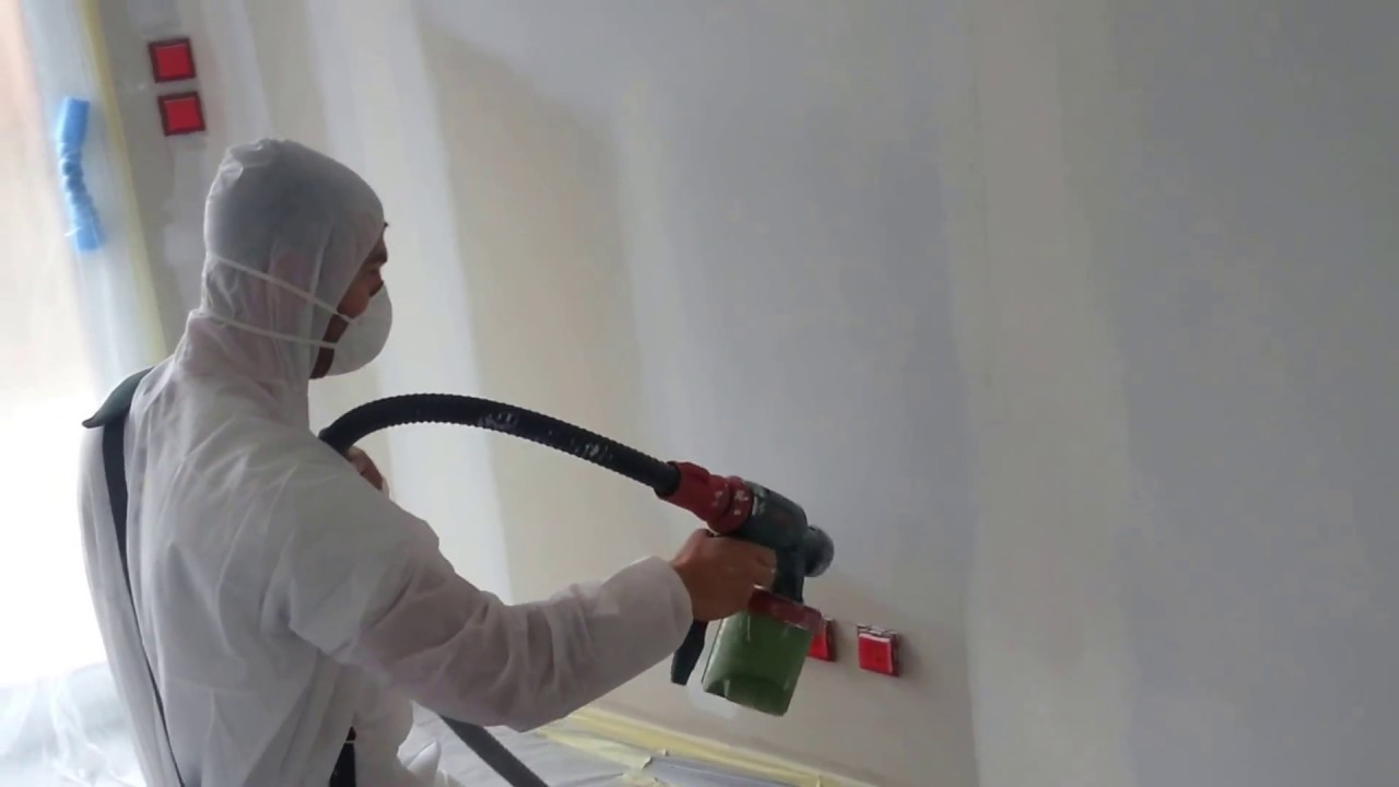 После размешивания бутылка прикручивается к пистолету, который, в свою очередь, должен быть соединён с компрессором. Нужно настроить давление на 2.5–5 атм, в зависимости от желаемой текстуры. Более низкое давление даст более крупную текстуру, а более высокое давление даст более мелкую текстуру.