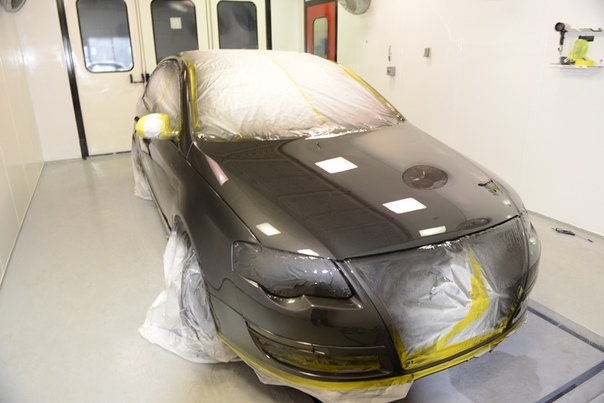 Те участки кузова, которых покраска не затрагивает, укрываются пленкой или газетами.