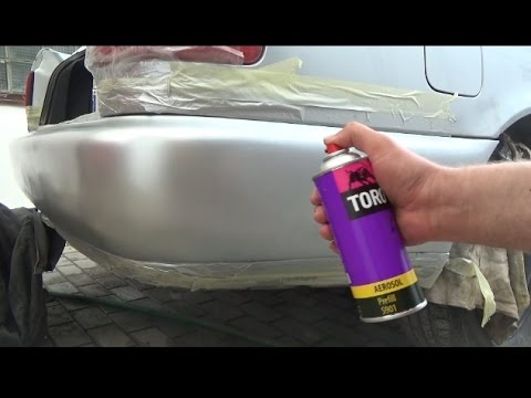 Существует также специальный грунт по пластику в виде аэрозоли. Если сначала покрыть бампер грунтовкой, а следом покрасить (разумеется, дождавшись, когда высохнет грунт), то можно получить вполне приемлемый результат.