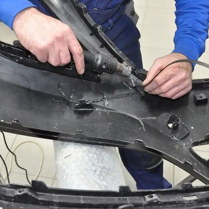 Пайка деталей производится полимером, имеющим сопоставимую вязкость и температуру расплавления, аналогичную материалу бампера автомобиля.