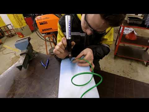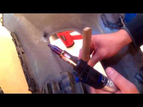 После того, как вы пройдете сквозь алюминий, продолжайте бить молотком, пока не пройдете через деревянную панель под ним, и шип не будет забит до упора.