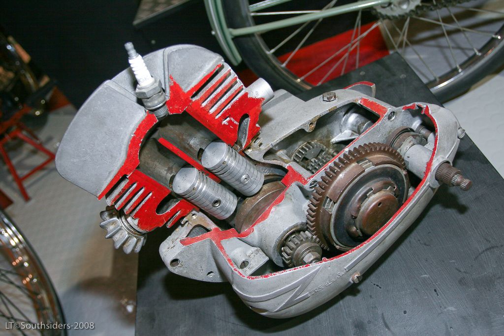 Спустя 10 лет появилась модификация с камерной продувкой, в которой уже не было нагнетательного поршня. Этот мотор спроектировал Джозеф Дэй.