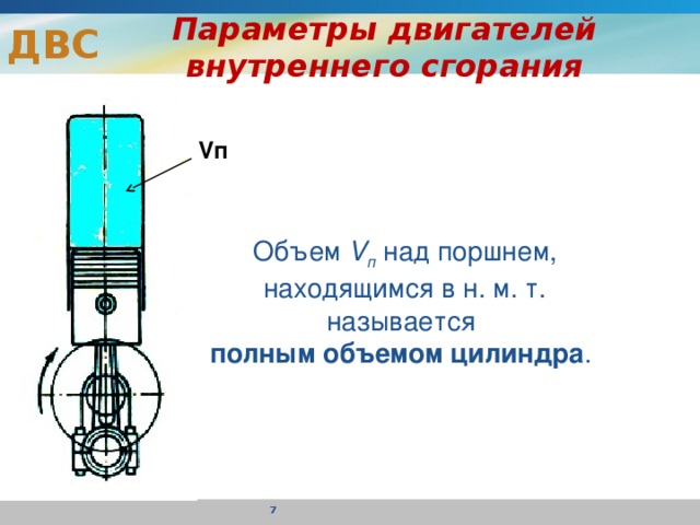 Поршень перемещается внутри цилиндра между ВМТ и НМТ.Для завершения полного цикла сгорания поршень совершает четыре хода, а коленчатый вал делает два полных оборота. Вытесненный объем — это объем, в котором движется поршень, зазорный объем — это объем, оставшийся в цилиндре, когда поршень достигает ВМТ.