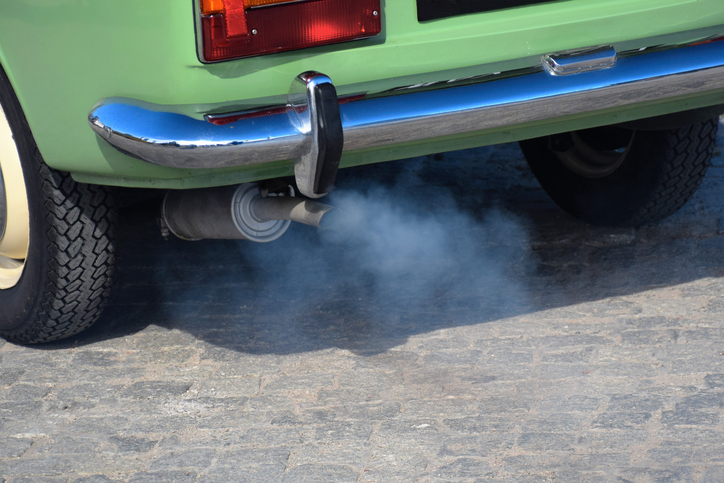 Синий дым из выхлопной трубы машины