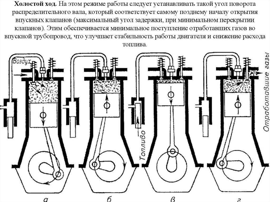 Чем выше рабочие обороты, тем больше необходимое опережение выхлопа (так называемая «продувка»).