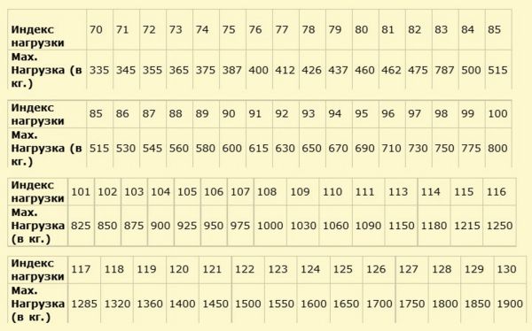 Индекс нагрузки (грузоподъемности) шин