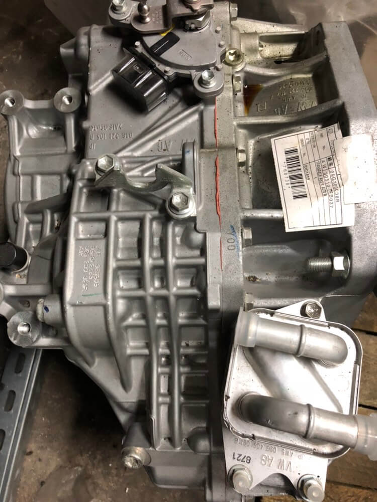 - также на ДСГ сверху коробки стоит теплообменник прямоугольной формы, а еще масляный фильтр. Если сравнивать типтроник Aisin и DSG, у классического автомата теплообменник имеет круглую форму, масляный фильтр отсутствует;