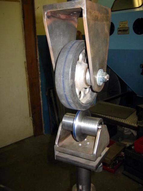 Хотя современные станки выполнены именно из квадратной трубы и вроде бы никто не жаловался. В любом случае, выбирать вам. Лично я изготовил скобу английского колеса из мощной, литой двутавровой балки от грузовика. Сталь качественная, разчитана на нагрузки в несколько тонн и хорошо сваривается. К тому же, как видно на фото выше, на обоих концах этой балки имеются мощные вертикальные отверстия, которые позволяют закрепить, а потом разворачивать оба ролика почти на любой градус.