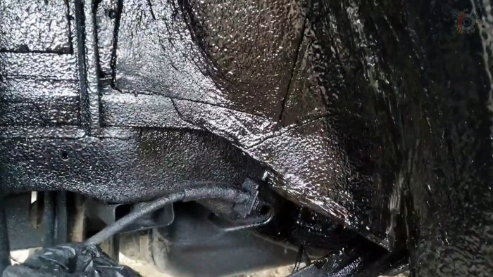 Обработка скрытых полостей, днища (материалами для днища) практически никакого эффекта шумоизоляции не дает (толщина пленки очень невысока). Эффект шумоизоляции появляется при нанесении резино-битумных мастик, материалов типа «жидкие подкрылки». Покрытие 2-3 мм. толщиной в той или иной степени снижает вибронагрузки и шум.