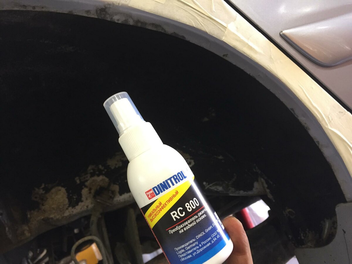 Влага высушивается тепловыми пушками, механически зачищаются очаги коррозии, и поверхность обезжиривается очистителем Dinitrol 7225 или 582.