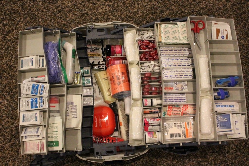 Расфасованные наборы содержат большую часть того, что вам нужно, по разумной цене. Но вы должны подумать о дополнении этих наборов личными лекарствами, гибкой шиной, небольшим рулоном клейкой ленты, повидон-йодом, ирригационным шприцем, щипцами, цифровым термометром и другими предметами.