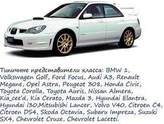 С класс автомобилей является наиболее распространенным в мире. Первой машиной класса С был легендарный Volkswagen Golf, ранее весь С класс именовали в честь родоначальника. Эти автомобили являются крайне универсальными – хорошо себя чувствую и в городе, и на трассе. Вмещают 5 и более человек и имеют объемный багажник. Класс С имеет двигатели объемом до 2 литров. Многие современные хэтчбеки и седаны С класса по габаритам догоняют следующий уровень, но все же уступают комфортом и оснащенностью. Класс С популярен в Европе в виде хетчбэков, в нашей же стране автомобили класса С популярны в версии седана.