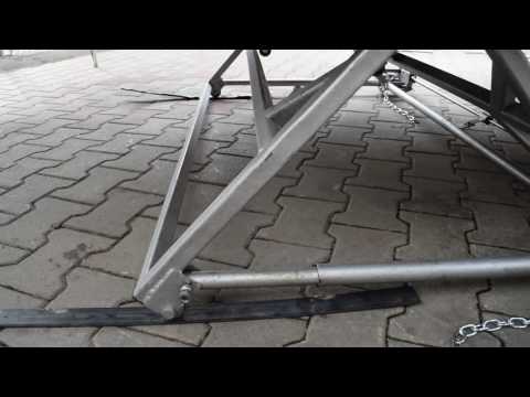 Балки скрепляются втулками по принципу ножниц, а гидроцилиндр с ручкой помогает поднять ножницы на нужную высоту.