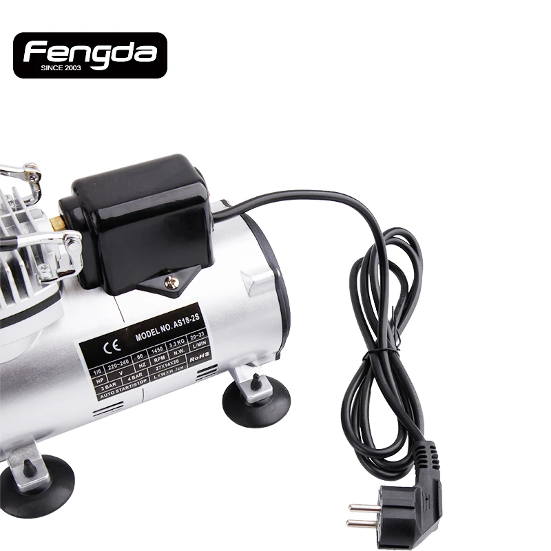 Компрессор AS18-2 для аэрографа безмасляный, с редуктором и фильтром, FENGDA