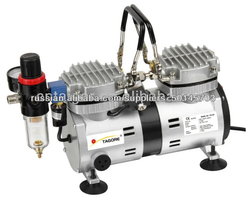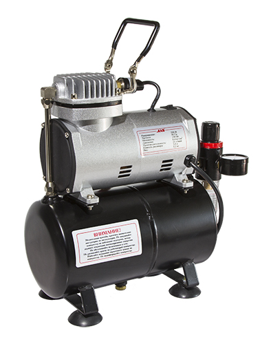 Компрессор предназначен ТОЛЬКО для аэрографов с постоянной подачей воздуха, т.е. нельзя перекрывать выход воздуха чтобы не испортить компрессор.