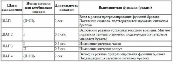 Для программирования часов выполняется совместное длительное нажатие на клавиши II и III, а затем водитель переходит в меню настройки (путем короткого воздействия на кнопку I). Для корректировки значений часов и минут применяются клавиши I и II, для записи результата в память производится длительное воздействие на II и III (до подачи сигнала зуммером).