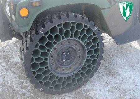 По этим и другим причинам ученые люди давно стремились решить такую проблему. И результат не вынуждал к длительному ожиданию – первая версия шин без воздуха была установлена на военный транспорт Humvee.