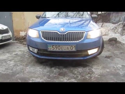 Владелец новой Skoda Octavia A7 попросил установить LED лампы в задний ход, задние поворотники и передние ПТФ своего автомобиля.