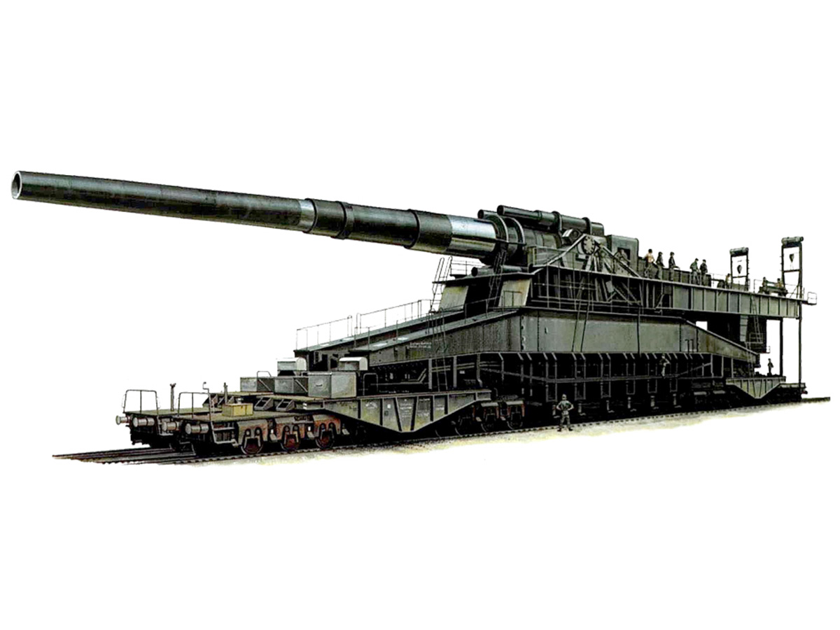 Во Второй мировой немцы применяли сверхпушку под названием «Дора». Она была собрана в конце сорок первого года. Калибр – 813 миллиметров. Длина ствола – 32 метра. Дальность действия – сорок километров. Её снаряды пробивали метровую броню, либо восьмиметровое бетонное укрепление. Немцы точно применяли «Дору» под Севастополем. Она сделала сорок восемь выстрелов. Попала пять раз.