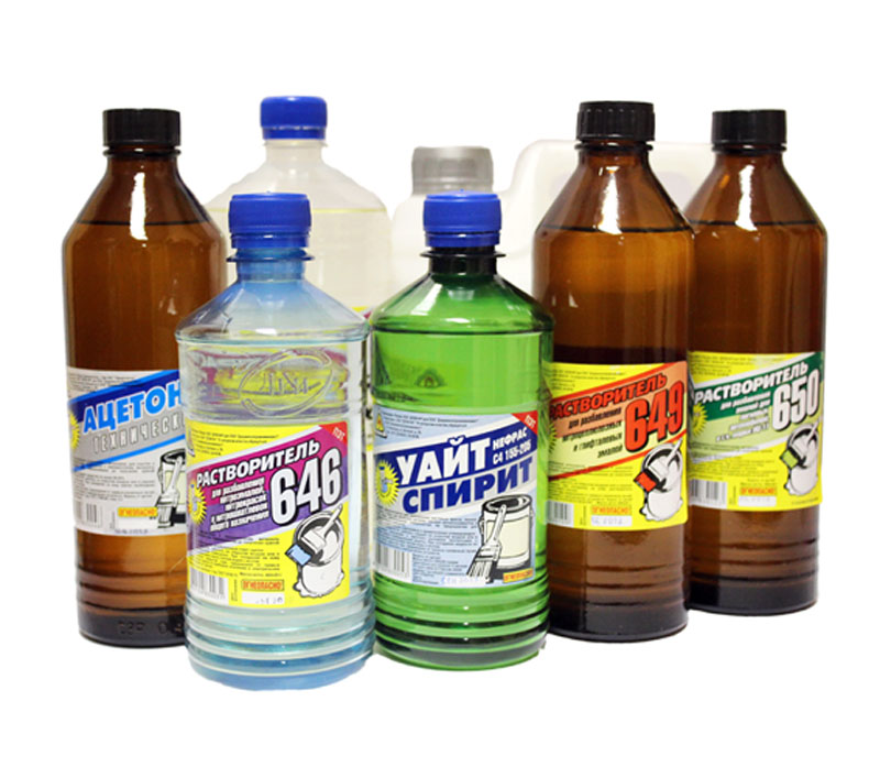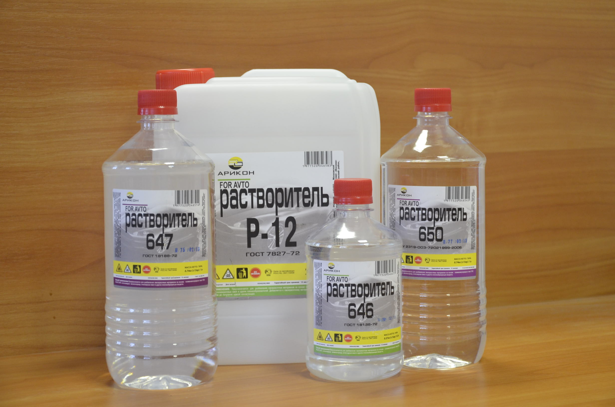 Более мягкий состав у № 650, его предпочитает большинства автомаляров для эмали и лака. - многокомпонентный растворитель Р-4, имеющий в составе толуол, бутилацетат и ацетон, рекомендован для алкидных красок.