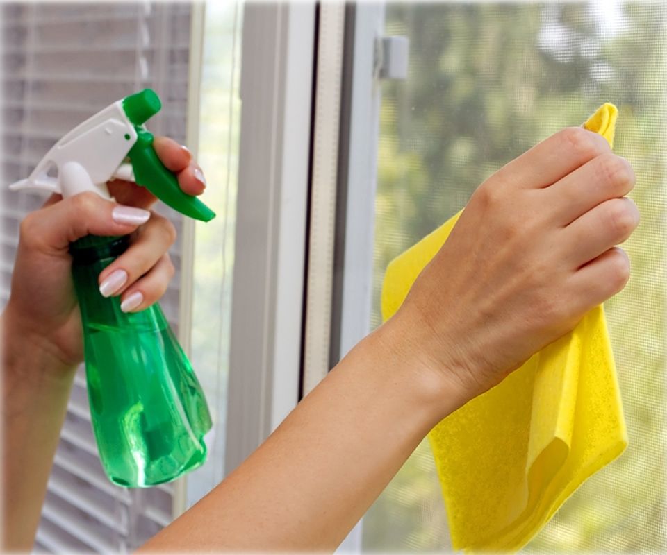 - Поскольку чистящие средства могут быть едкими или кислотными, наденьте перчатки при чистке стеклянных поверхностей в доме.