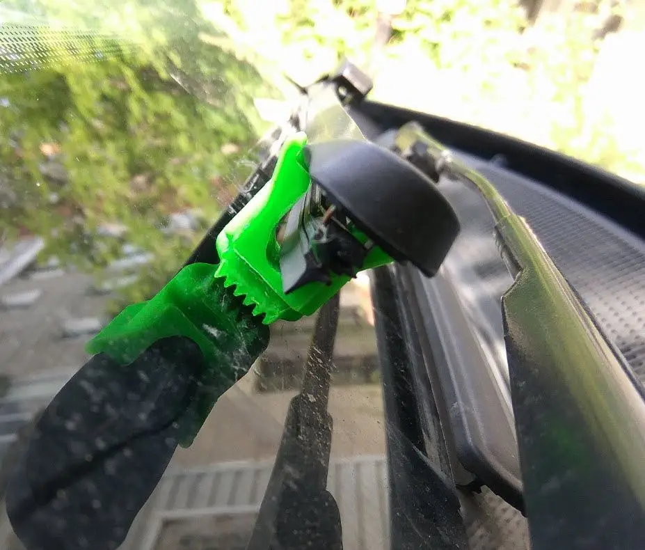 громкий звук передачи. Если резинка стеклоочистителя все же «смещается», несмотря на неправильный угол наклона, этот процесс почти сопровождается стуком. Аналогичный эффект возникает из-за люфта, когда лезвие прикреплено к рычагу стеклоочистителя (поводку). В случае стеклоочистителей рамы во время работы появляется люфт в шарнирах шарниров коромысел, фиксирующих переходник к металлическому основанию дворника.