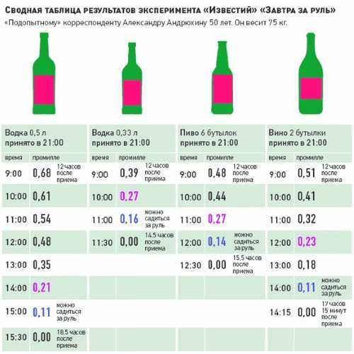Таблица выветривания алкоголя из организма