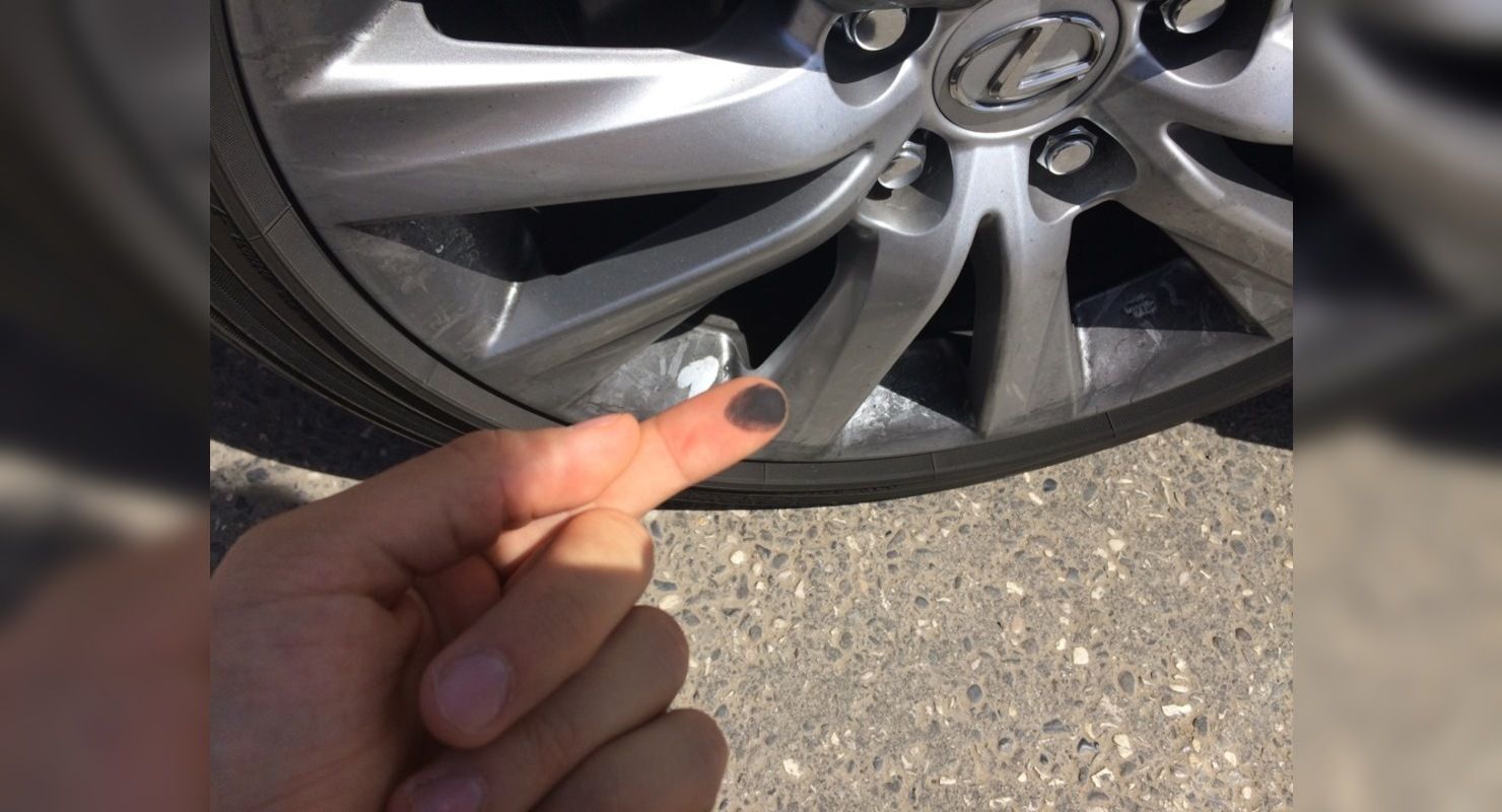 Этот черный материал, который скапливается на колесах вашего автомобиля, называется тормозной пылью.