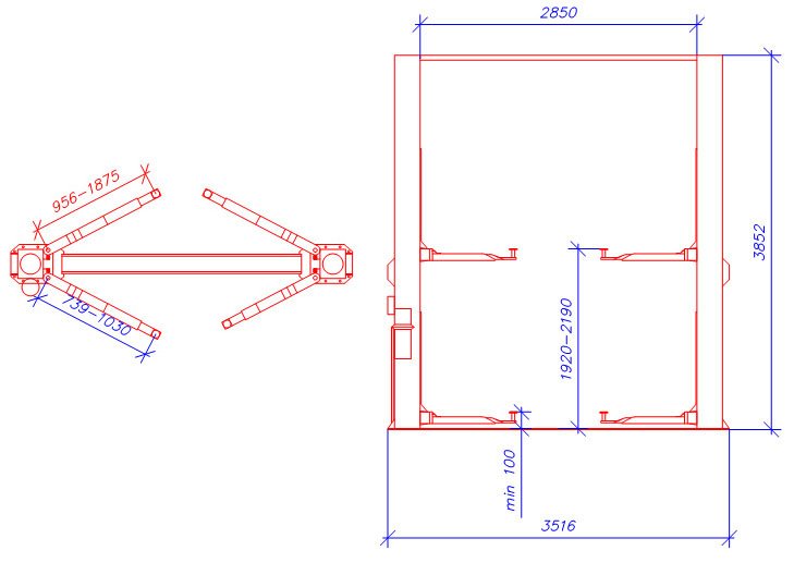 Выбор габаритов автоподъемника зависит от площади гаража, в котором он будет использоваться. Средняя высота устройства составляет три с половиной метра, а ширина — три метра. Оборудование с такими габаритами способно поднять транспортное средство, масса которого достигает 3-4 тонны.