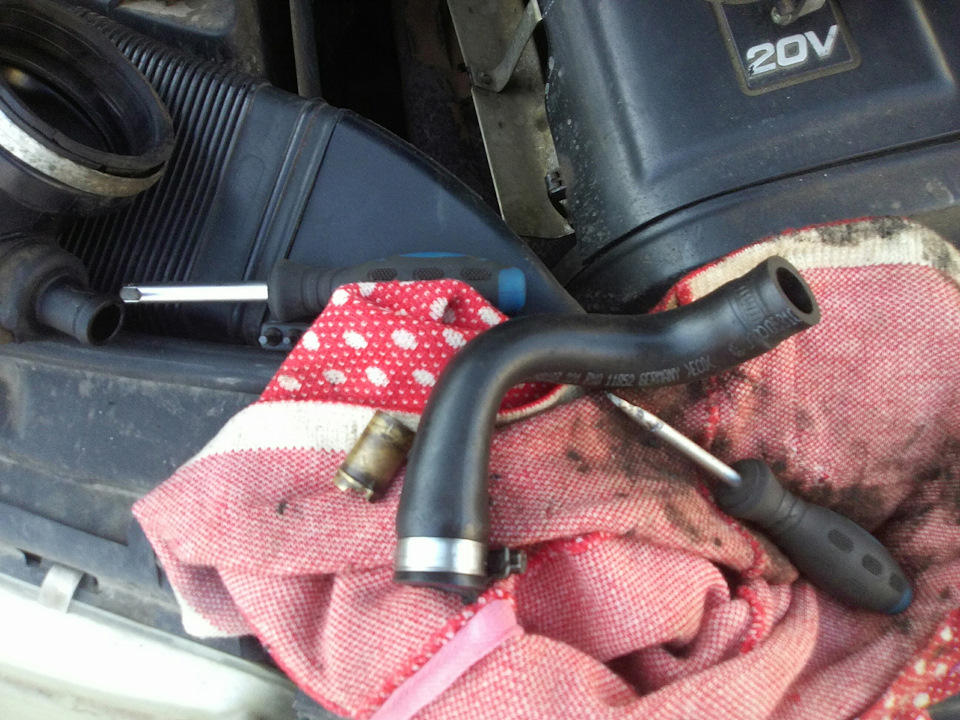 Крестовой отверткой ослабляем затяжку хомута шланга большого шланга вентиляции картера