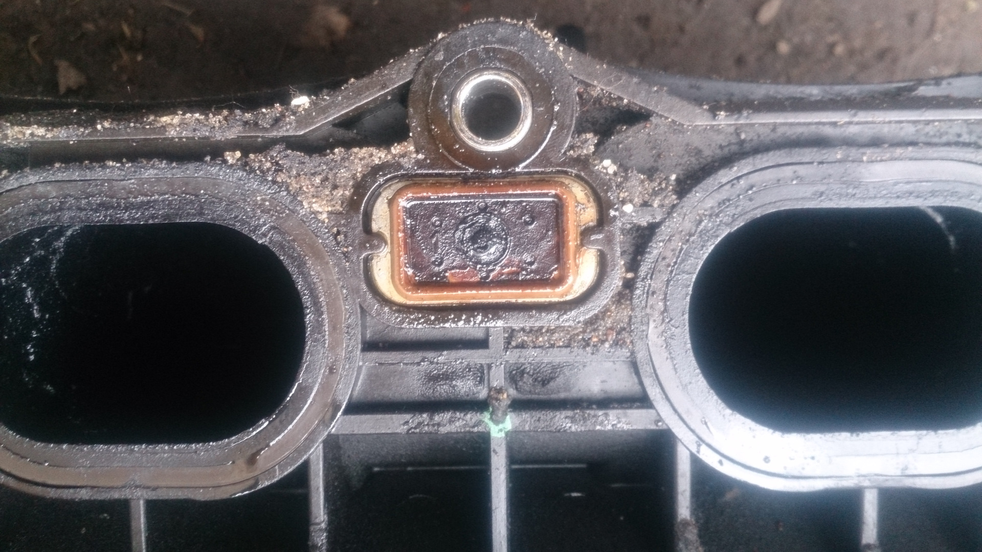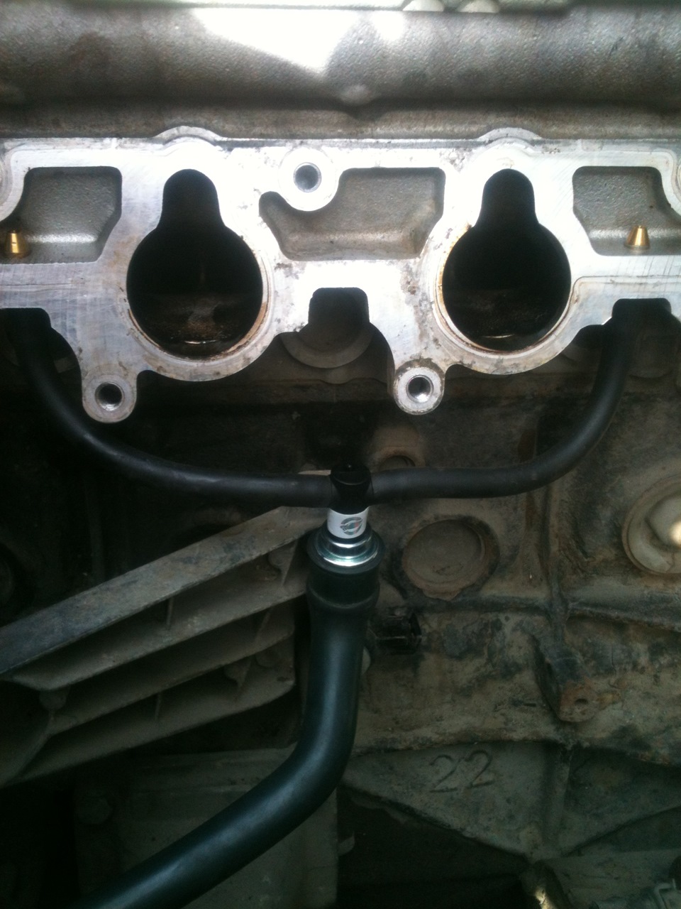 Забор газов ведется с картера, точнее не из картера, а из узла масляный насос-маслянный фильтр, затем попадает на обратный клапан и от него приходит на маслянные форсунки, которых две, одна между вторым и первым цилиндром, другая между третьим и четвертым, а уж оттуда всасывается в камеры. Вот эти то форсунки я и поставил под подозрение,как виновников «замасливания» свечей. Но для данной процедуры нужны расходники, заказал.