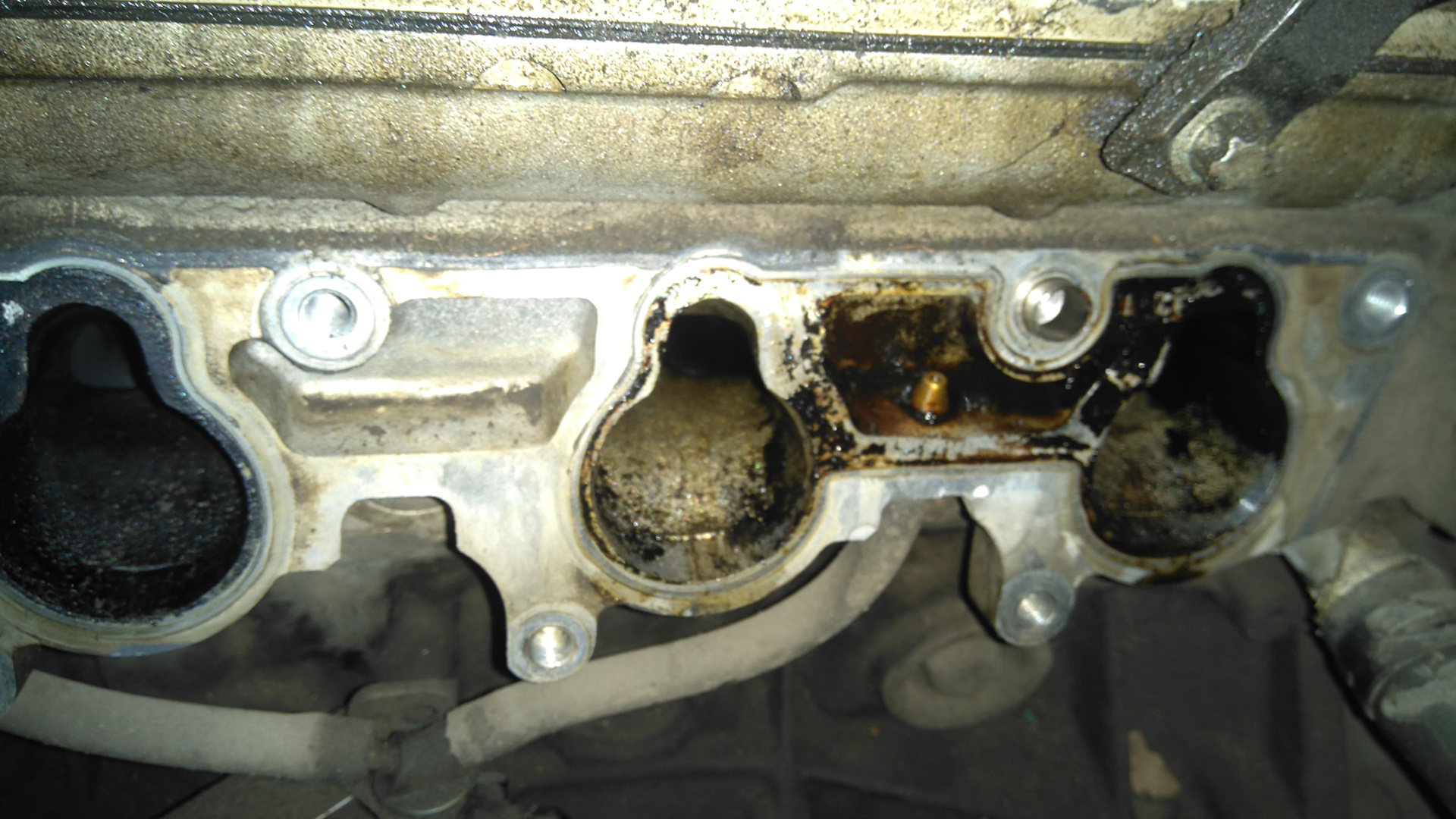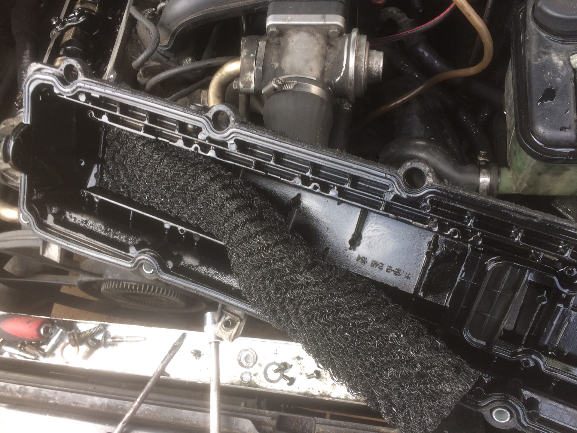 Отмывал все долго, т.к. еще и клапанную внутри мыл, работал до мультиков в глазах, вонь в запертом гараже (хоть и с какой-то вытяжной дыркой) от очистителя карбюратора, солярки, бензина и уайт-спирита опротивела до рвотных позывов, несмотря на респираторы.