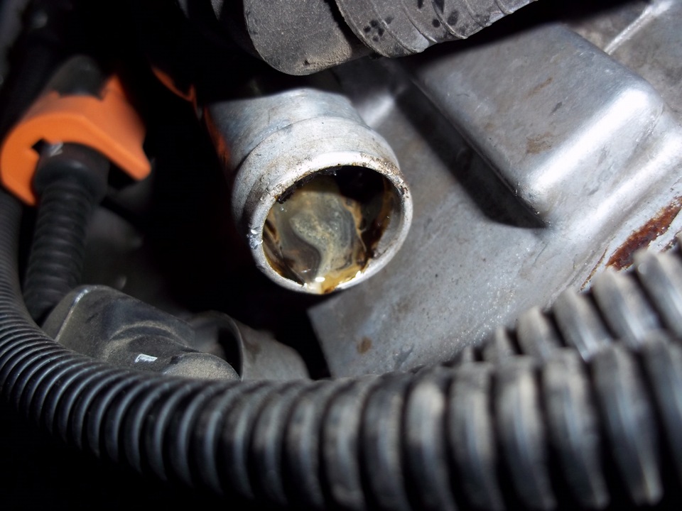 Из-за этого давление газов внутри двигателя повышается, и появляются течи масла через уплотнения.