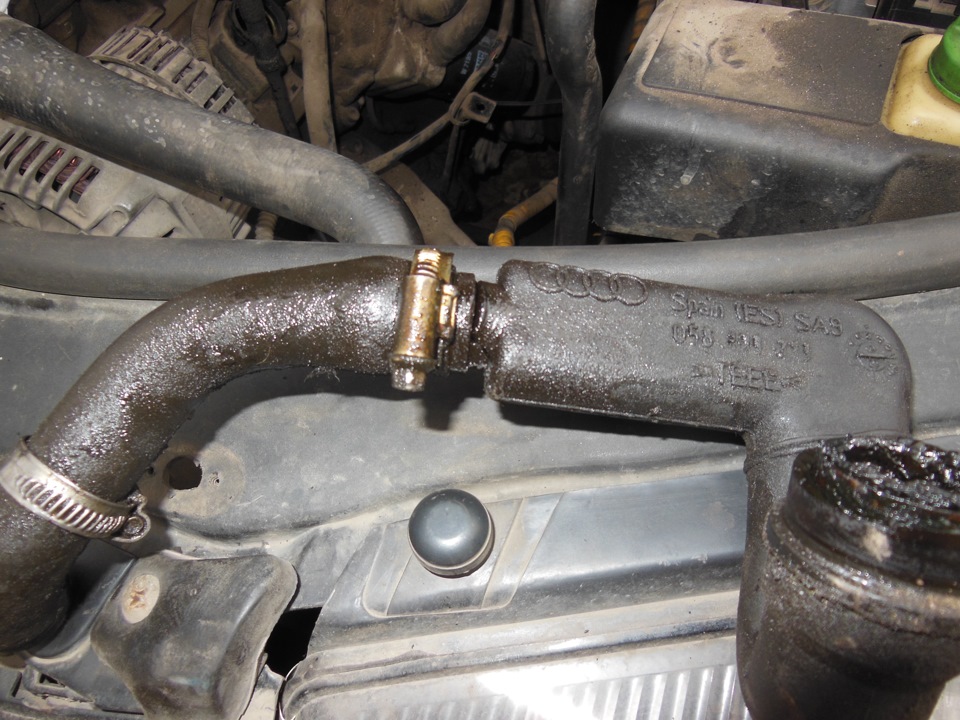 Дэйв заменил свой модный хромированный послепродажный воздухоочиститель на стандартный, прикрепил шланг от маслозаливной горловины и вакуумную линию к отверстию на впускном коллекторе, и вуаля! Нет больше масла на жестяной банке двигателя (и, следовательно, не капает под машину).Стандартный воздушный фильтр — ваш лучший выбор (я знаю, маленькие хромированные детали выглядят круто? 🙂
