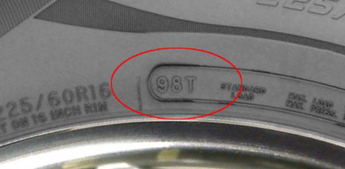 Индекс шины, как правило, состоит из двух параметров – индекс допустимой нагрузки и индекс допустимой скорости. Обозначается следующим образом: 90R, где 90 – индекс допустимой нагрузки на колесо, а R – индекс скорости. Данный пример расшифровывается так: 90 означает, что максимальная нагрузка на одно колесо составит 600 кг, т.е. данную шину можно использовать на автомобиле с максимальной снаряженной массой не более 2 400 кг (600 х 4). R – означает что допустимая скорость для данной шины – 170 км/ч.