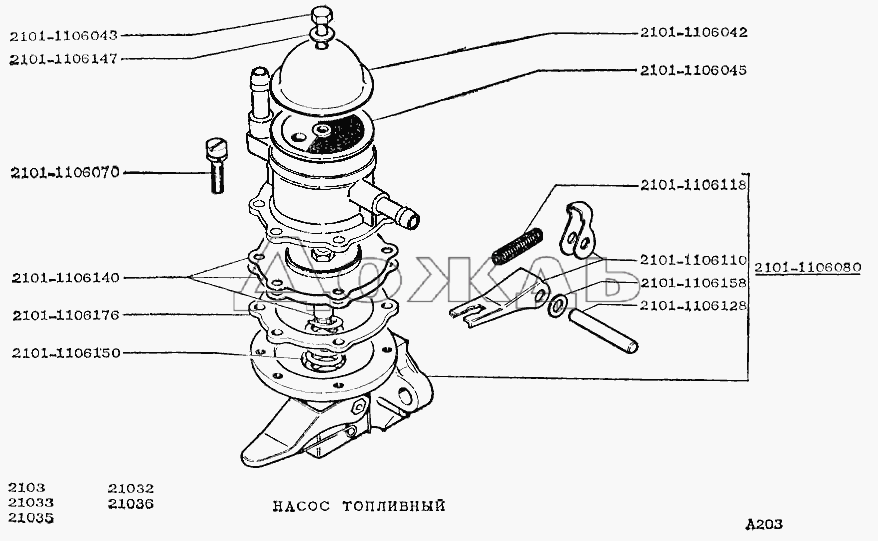 Топливоподкачивающая помпа крепится к корпусу топливного насоса и приводится от эксцентрика кулачкового вала насоса. [15]