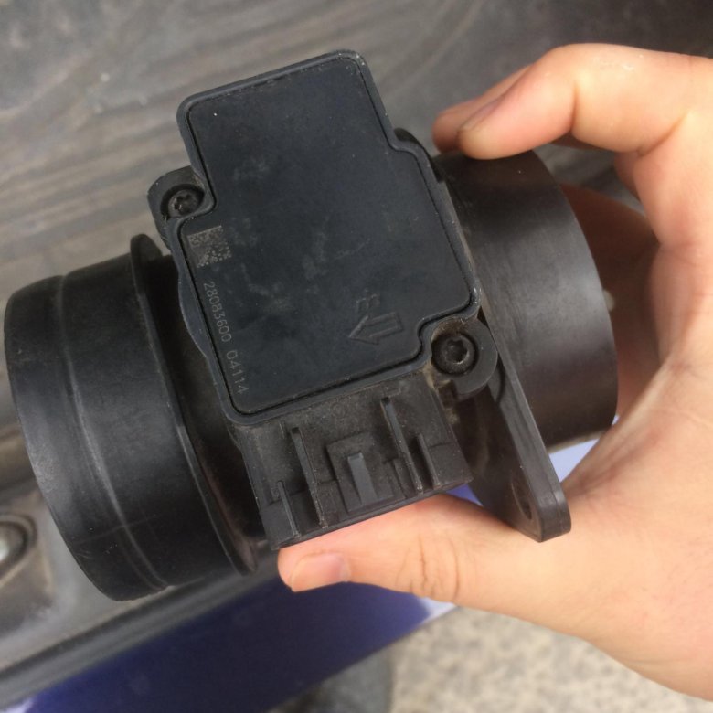 Датчик массового расхода воздуха (или ДМРВ) установлен между корпусом воздушного фильтра и впускным коллектором. Он предназначен для измерения количества воздуха, поступающего в двигатель, и передачи сигнала в блок управления двигателем.
