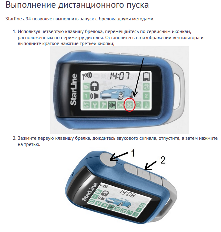 Автозапуск — это включение мотора с брелка на транспортных средствах, у которых механический короб передачи и «автомат». Сразу же сказывается на цене, однако даю совет подбирать сигнализационную систему с этой возможностью. Довольно комфортна зимой, когда вы можете из квартиры включить двигатель, таким образом сократится промежуток времени прогрева холодного транспортного средства. Дате возможность выполнить установку автозапуска мотора на конкретный промежуток времени и обеспечивать в салоне автотранспорта оптимальный температурный режим.