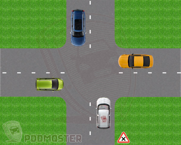 В таких ситуациях необходимо вспомнить уже известное нам правило «правой руки» — уступи тому кто приближается справа. Это относится ко всем водителям, приближающимся к такому перекрестку и находящимся в равных дорожных условиях.