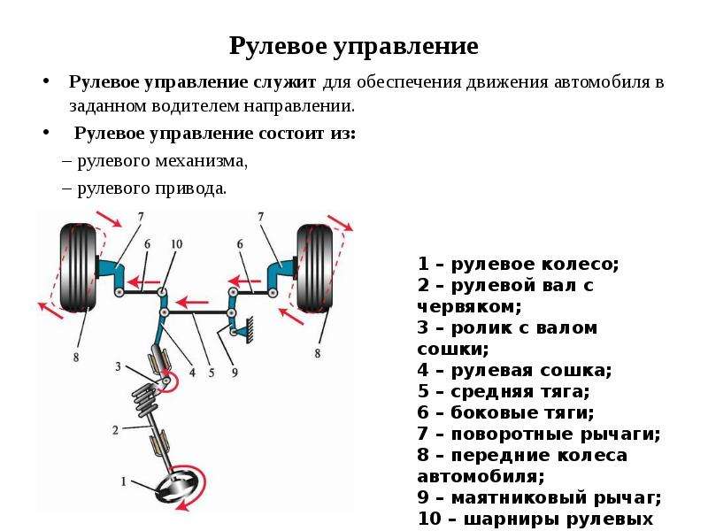 При помощи рулевого управления осуществляется поворот управляемых колес, и тем самым изменяется направление движения автомобиля.