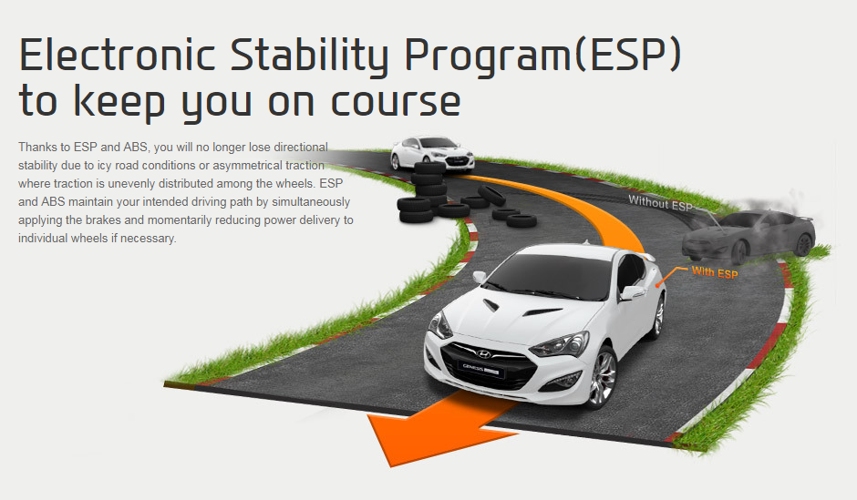 Благодаря ESP автомобиль гораздо меньше подвержен риску сорваться в занос или выйти на боковое скольжение. Положение машины на дороге стабилизируется и сохраняется изначальная курсовая устойчивость даже на сложных участках трассы и во время поворотов.
