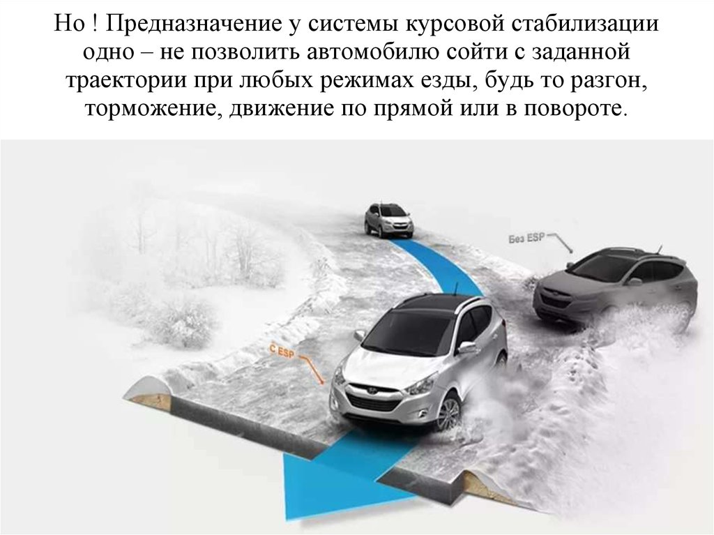 А особенно на высокой скорости или на плохом покрытии, когда склонность к сносу или заносу гораздо выше. Отсюда вытекает и второе простонародное название системы — противозаносная система.