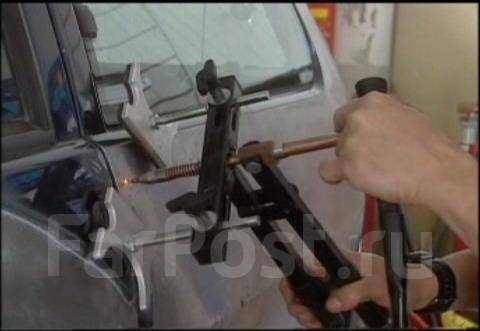 - Произвести захват крепежного элемента и, используя специальные приспособления для правки, произвести вытяжку деформированной поверхности.В качестве приспособления для правки используют стапели, гидроцилиндры, механические растяжки, стяжки, обратный молоток.