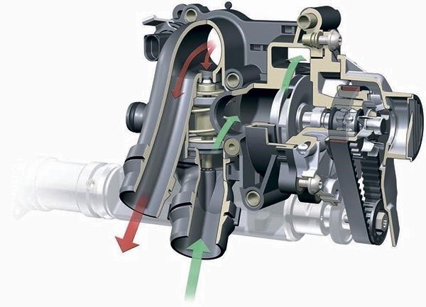 Система турбонаддува двигателей TSI имеет промежуточный охладитель водяного охлаждения с низкотемпературным контуром, независимым от системы охлаждения двигателя. В результате более высокое давление наддува достигается гораздо быстрее. Эта ситуация значительно сокращает время, необходимое для получения максимального заряда в камерах сгорания. Это гарантирует, что двигатель имеет улучшенную динамику.